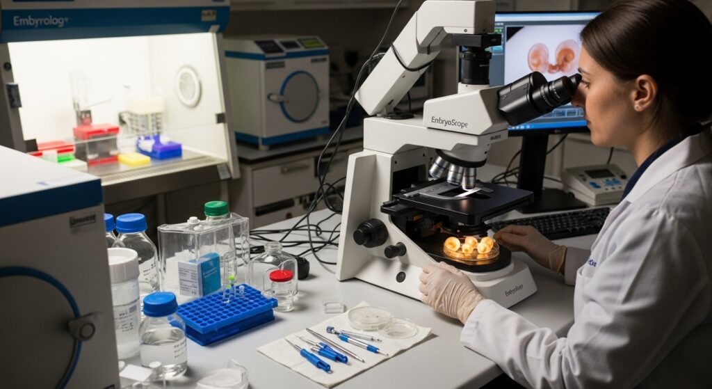 Na Clínica Hope, usamos tecnologias de última geração para acompanhar o desenvolvimento dos embriões e identificar os mais promissores. As principais técnicas incluem: